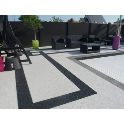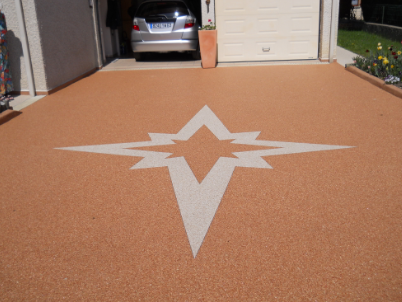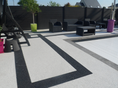 Revêtement de sol décoratif et drainant, composé d’un mélange de granulats naturels ou colorés et de résine polyuréthane. Coloris, granulométries et aspects variés avec une excellente résistance aux UV.